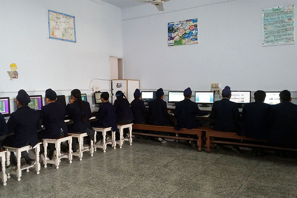 The school has a well equipped air conditioned computer lab. Computer education is imparted from 1st to 12th classes. School has computerized all the accounts, library records, admission form and report cards etc. to ensure the greater efficiency. Children can access the facility of internet, educational softwares and download the material for their project work etc. Every year new computers have been added to the computer lab. Latest techniques are being used to deliver lectures through LCD Projector, curriculum and other educational CDs.